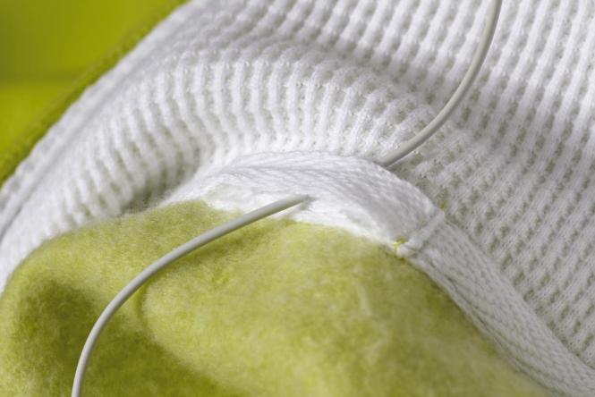 pętelki na słuchawki – wzór ‘w jodełkę’, w kontrastowym kolorze (pasującym do wnętrza kaptura)