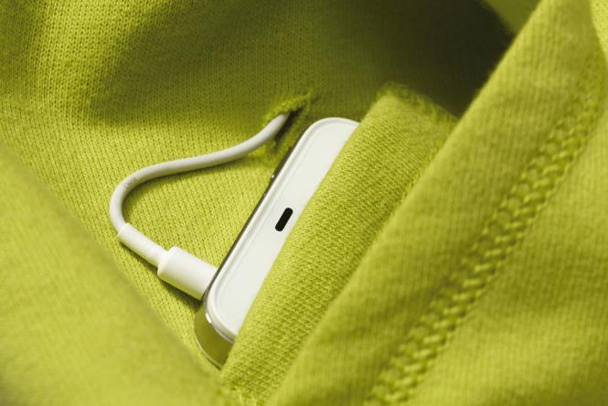 kieszonka na MP3 wewnątrz kieszeni-kangurki