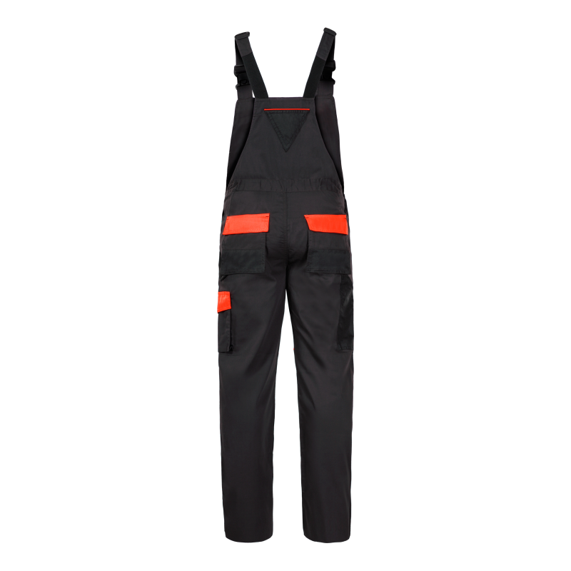 Ogrodniczki wykonano z materiału o gramaturze 190g/m2 (35% bawełny, 65%