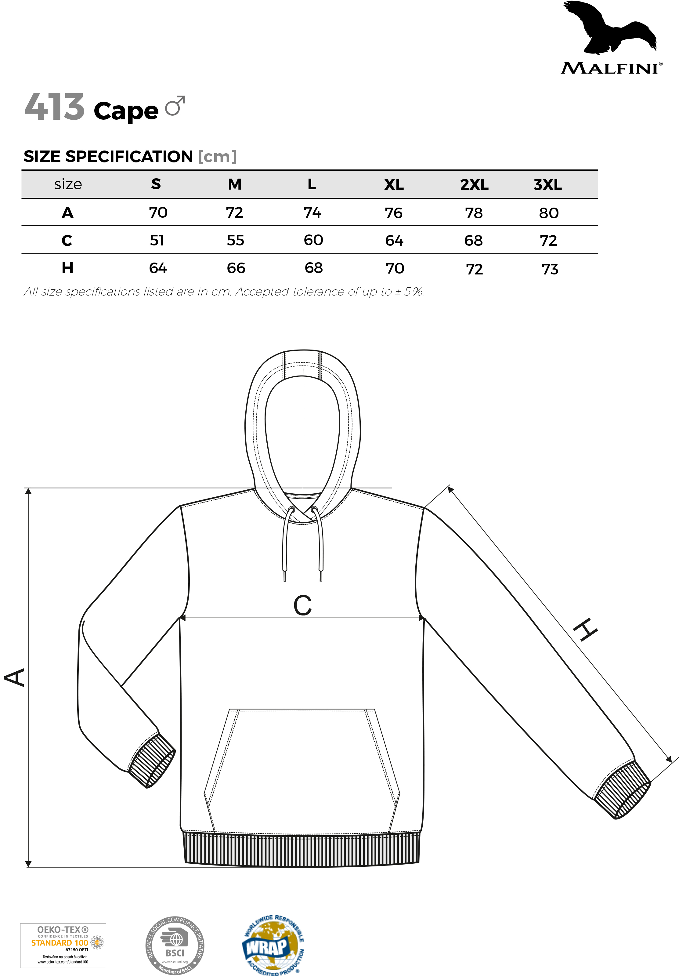 Bluza Męska Z KAPTUREM MALFINI CAPE 413