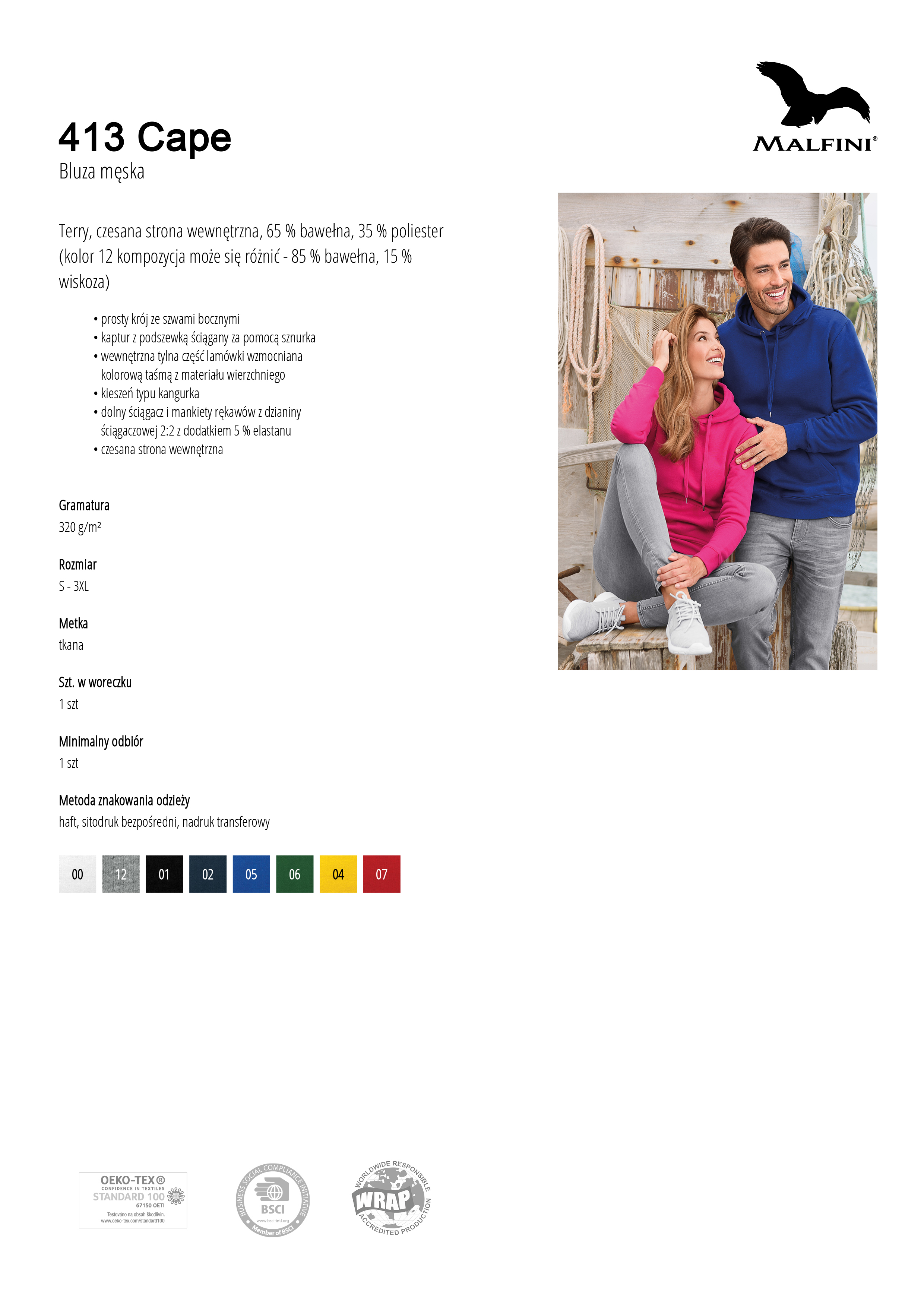 - Kod produktu: Bluza Męska Z KAPTUREM MALFINI CAPE 413