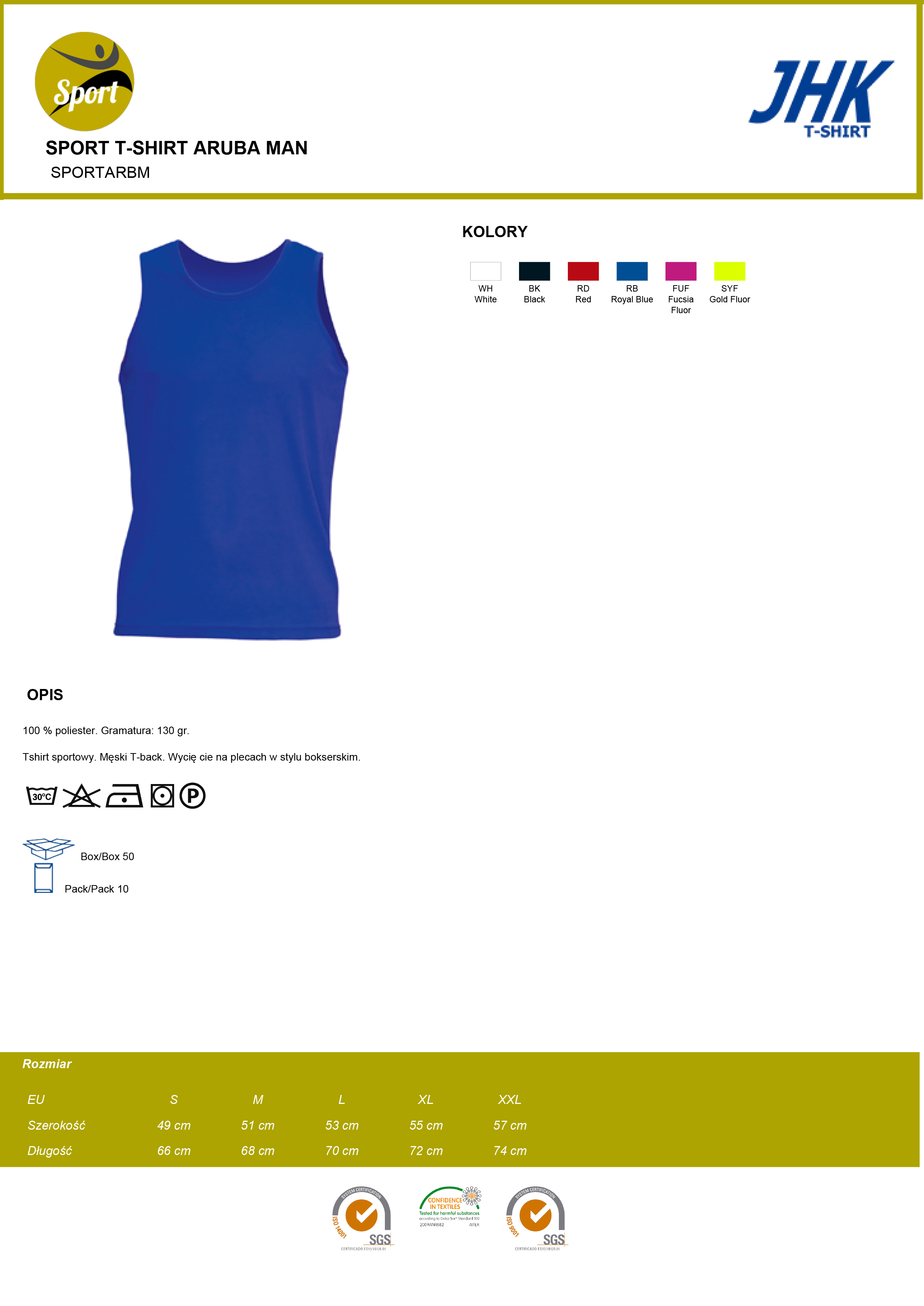 • Kod produktu: T-shirt sportowy Męski T-back JHK ARUBA