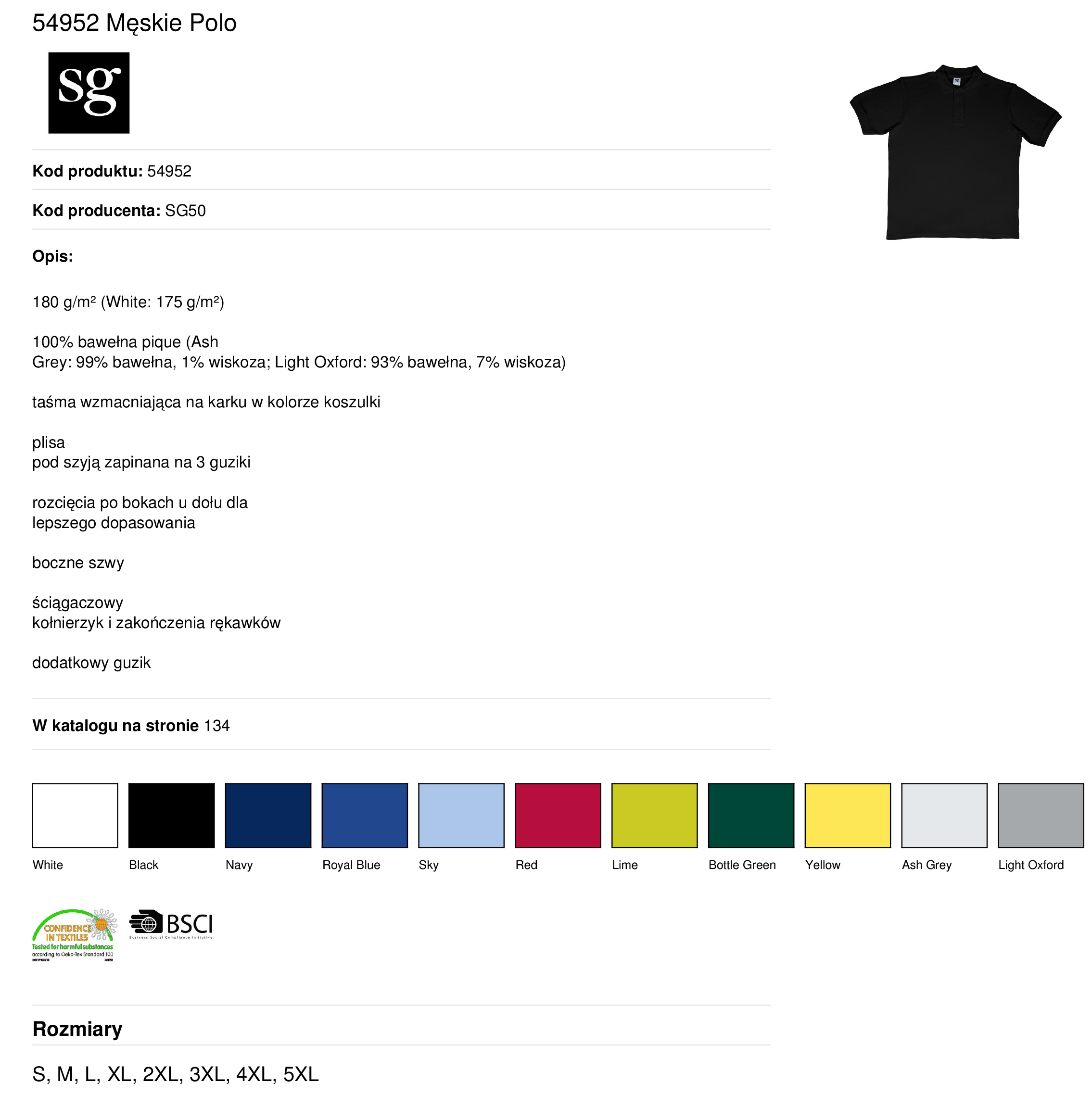 100% bawełna pique (Ash Grey: 99% bawełna, 1% wiskoza; Light Oxford: 93% bawełna, 7% wiskoza)