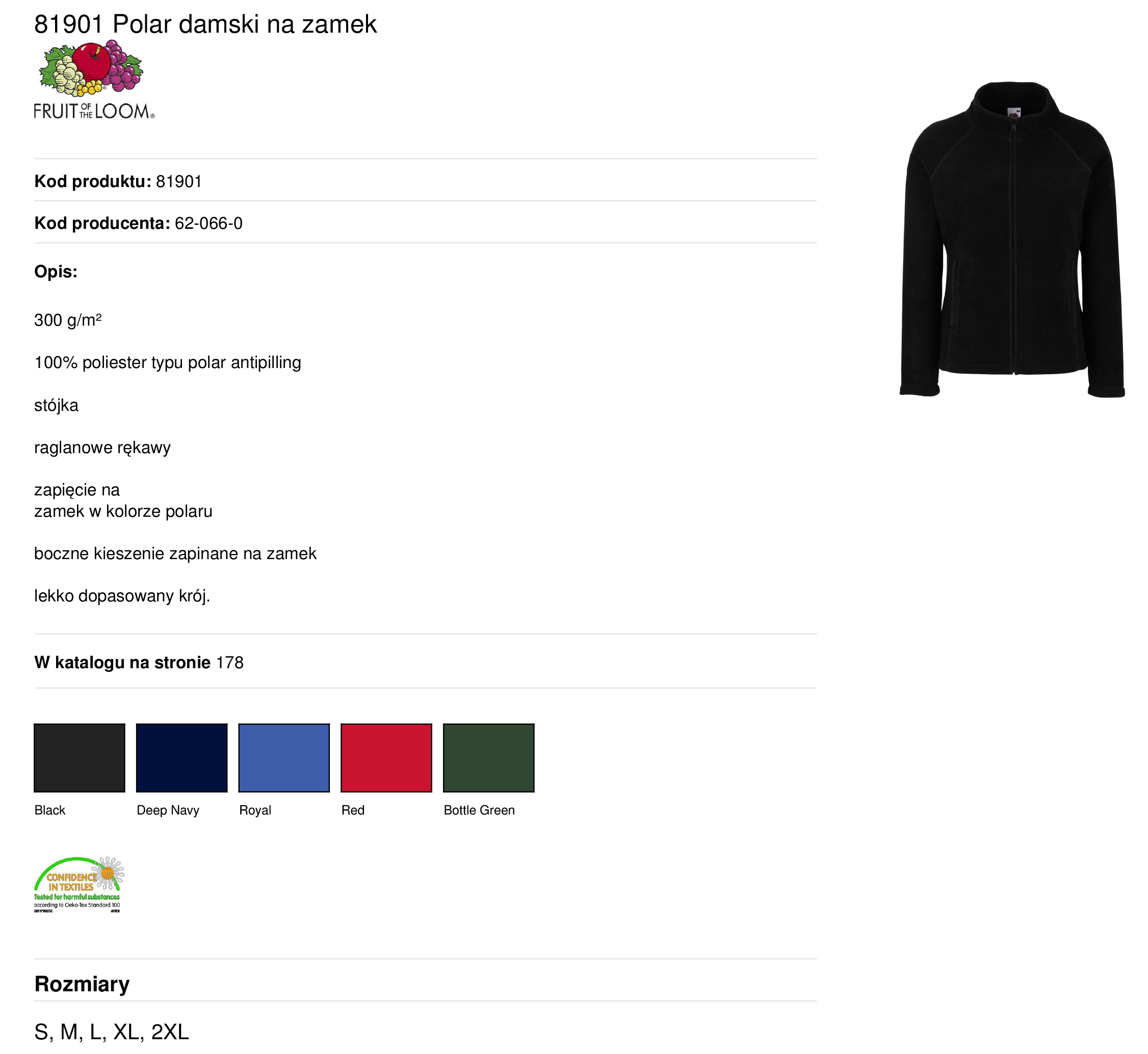 - Kod produktu: Polar damski na zamek HAFT/NADRUK, kolory