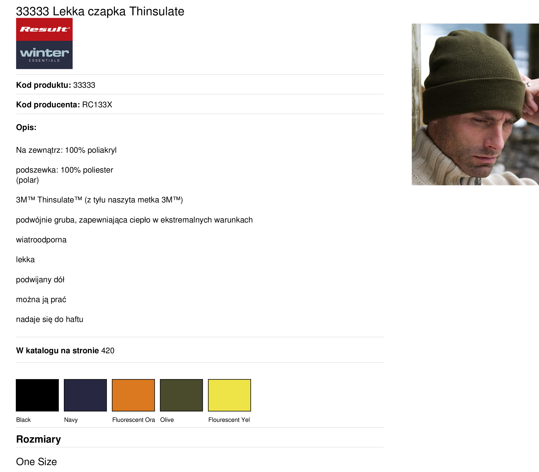 • Kod produktu: Lekka czapka Thinsulate HAFT/NADRUK
