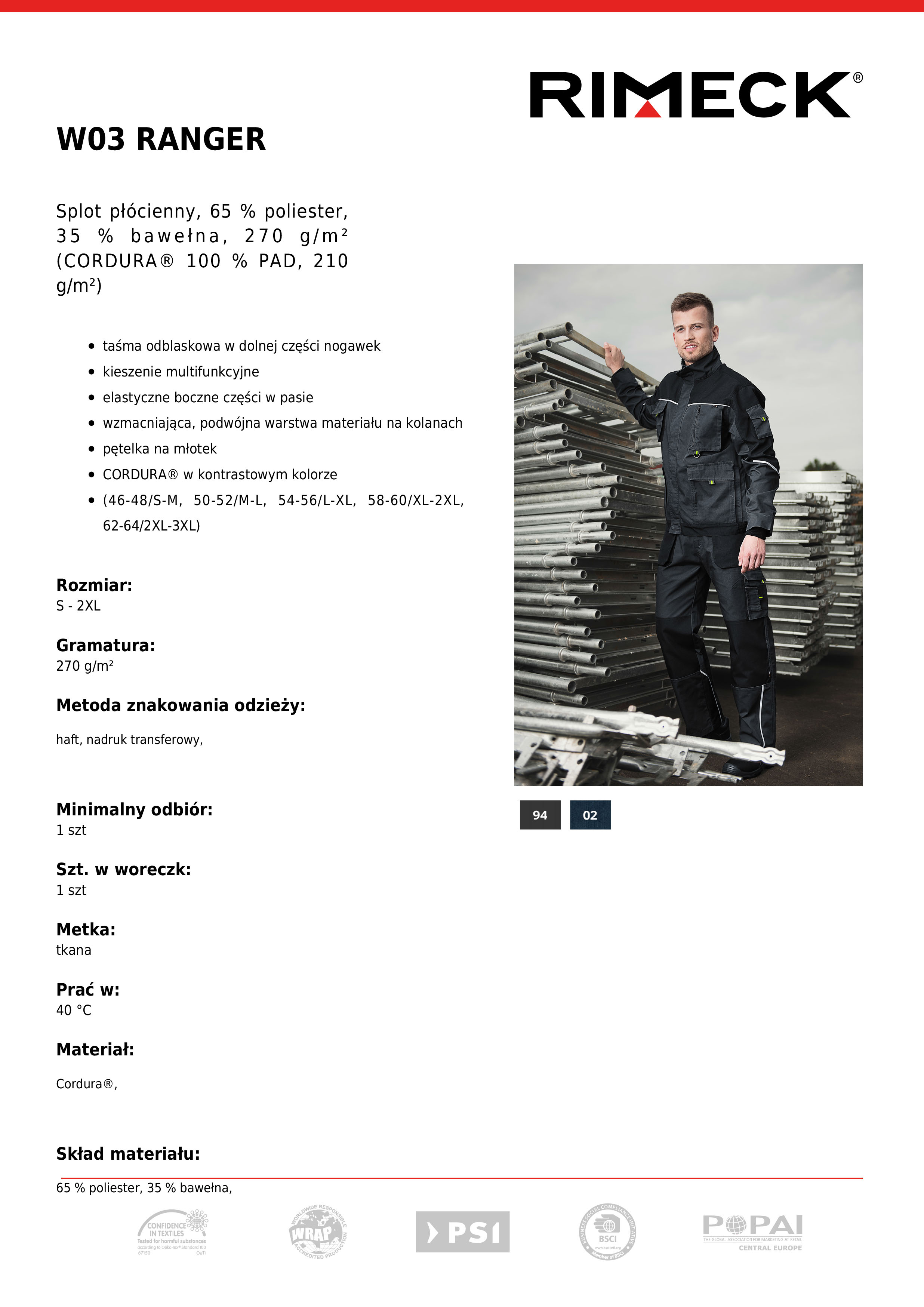 • Kod produktu: Spodnie robocze męskie RANGER