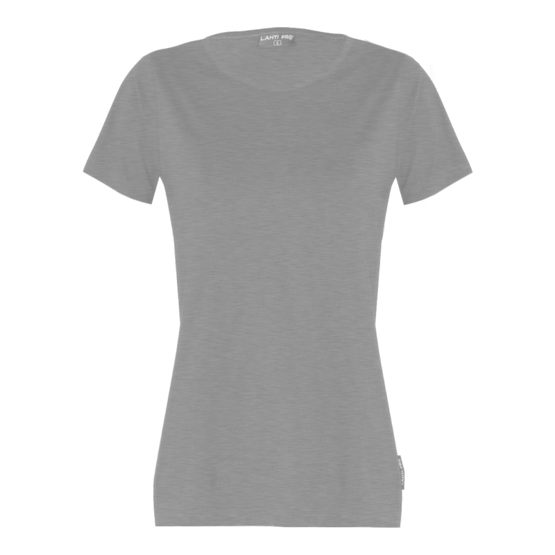 Koszulka t-shirt dla kobiet Lahti Pro L40214. Wykonano ze stu procentowej bawełny typu ring-spun o gramaturze 180g/m2. Charakteryzuje się wysoką gęstością a jednocześnie miękkością i gładkością. Gwarantuje wytrzymałość i odporność na wycieranie oraz zapewnia komfort noszenia. Taśmy na karku i ramionach zapewniają dodatkowe wzmocnienie. Podwójne szwy podwyższają trwałość odzieży. Odpowiednio wysoka gramatura idealnie nadaje się do wykonywania nadruków i haftów na koszulce. Koszulka posiada normę EN ISO 13688 oraz certyfikat CE. Jest w pierwszej kategorii środków ochrony indywidualnej.