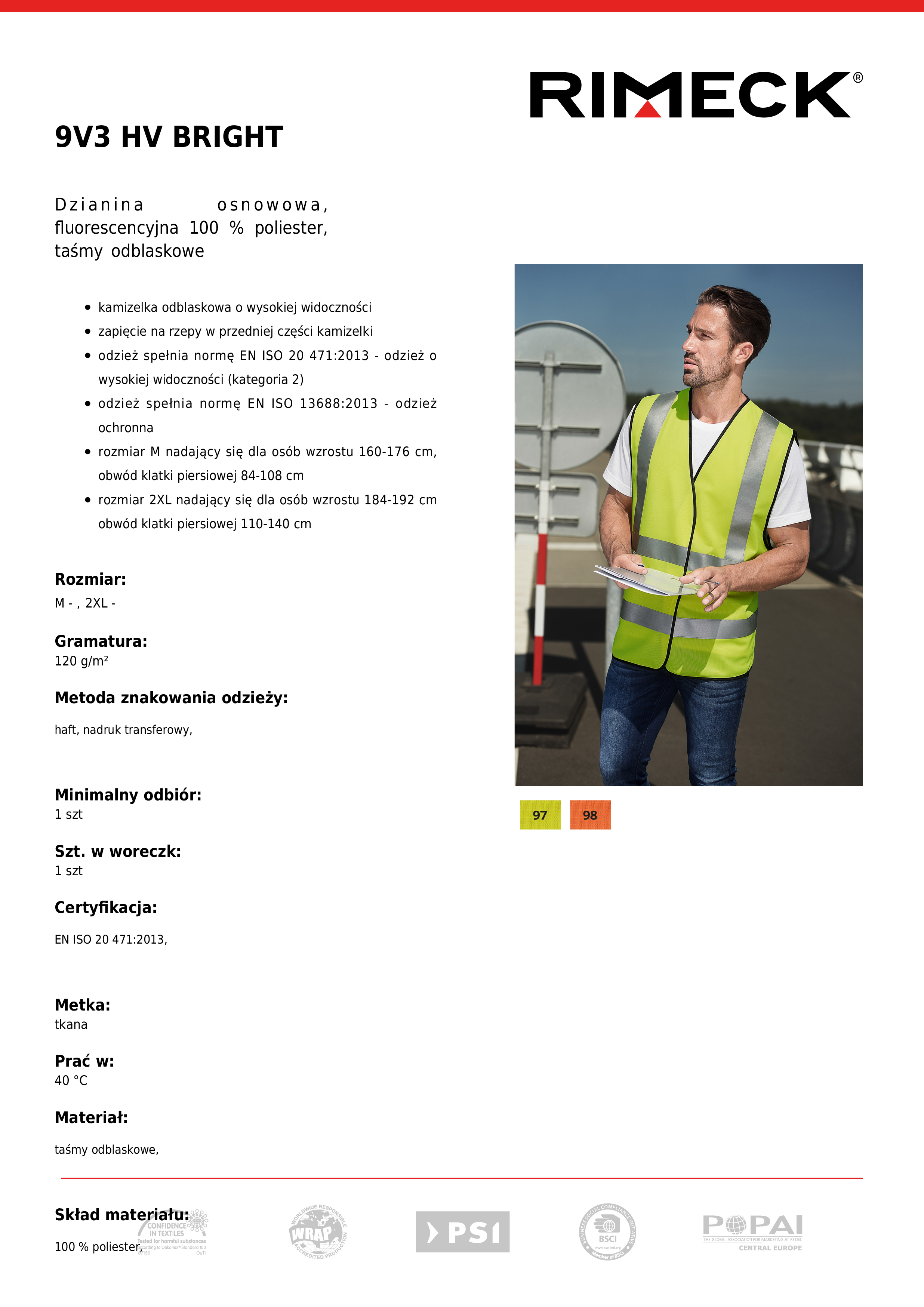 - Kod produktu: Kamizelka odblaskowa HV BRIGHT