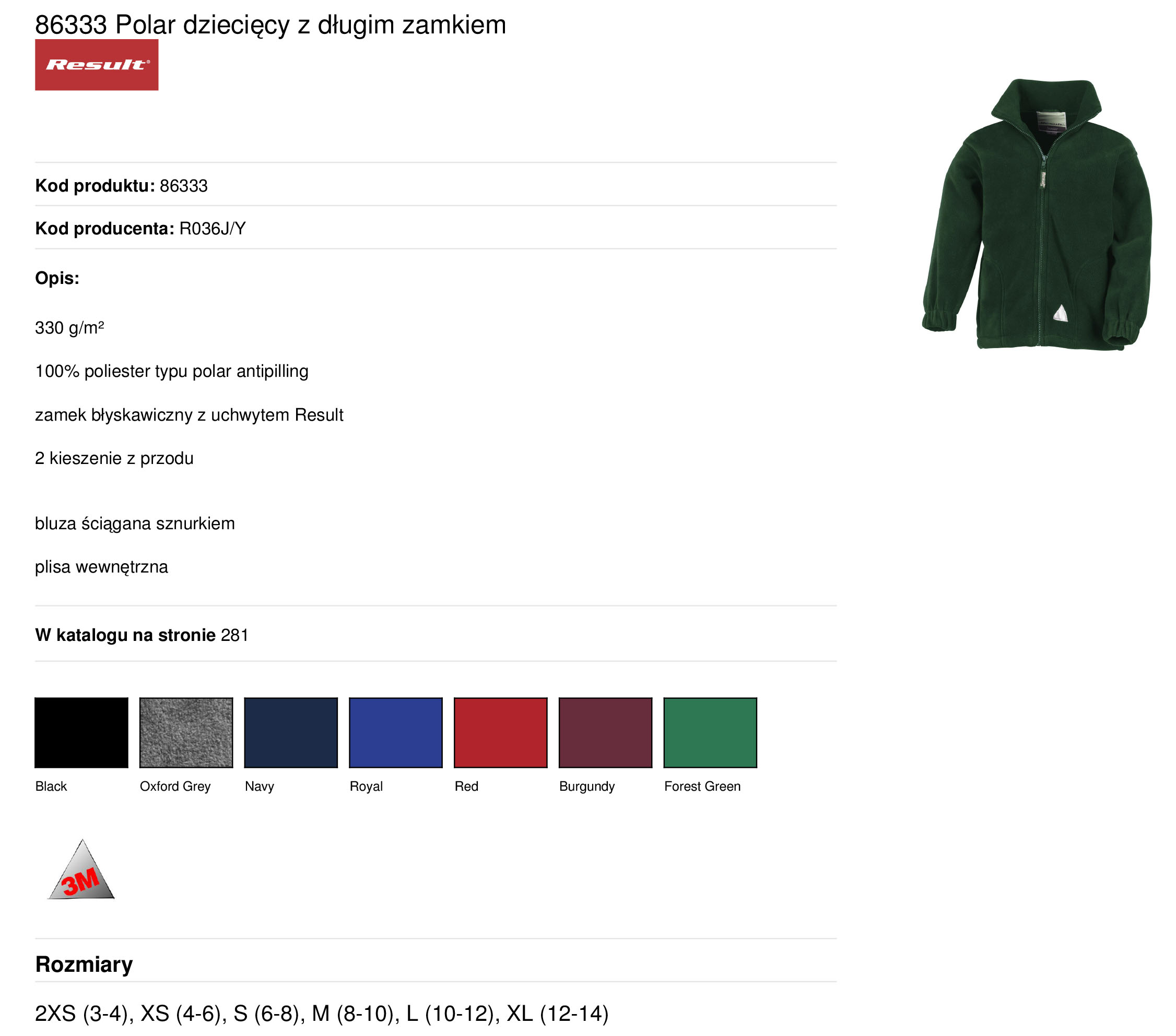 • Kod produktu: Polar dziecięcy z długim zamkiem HAFT/NADRUK