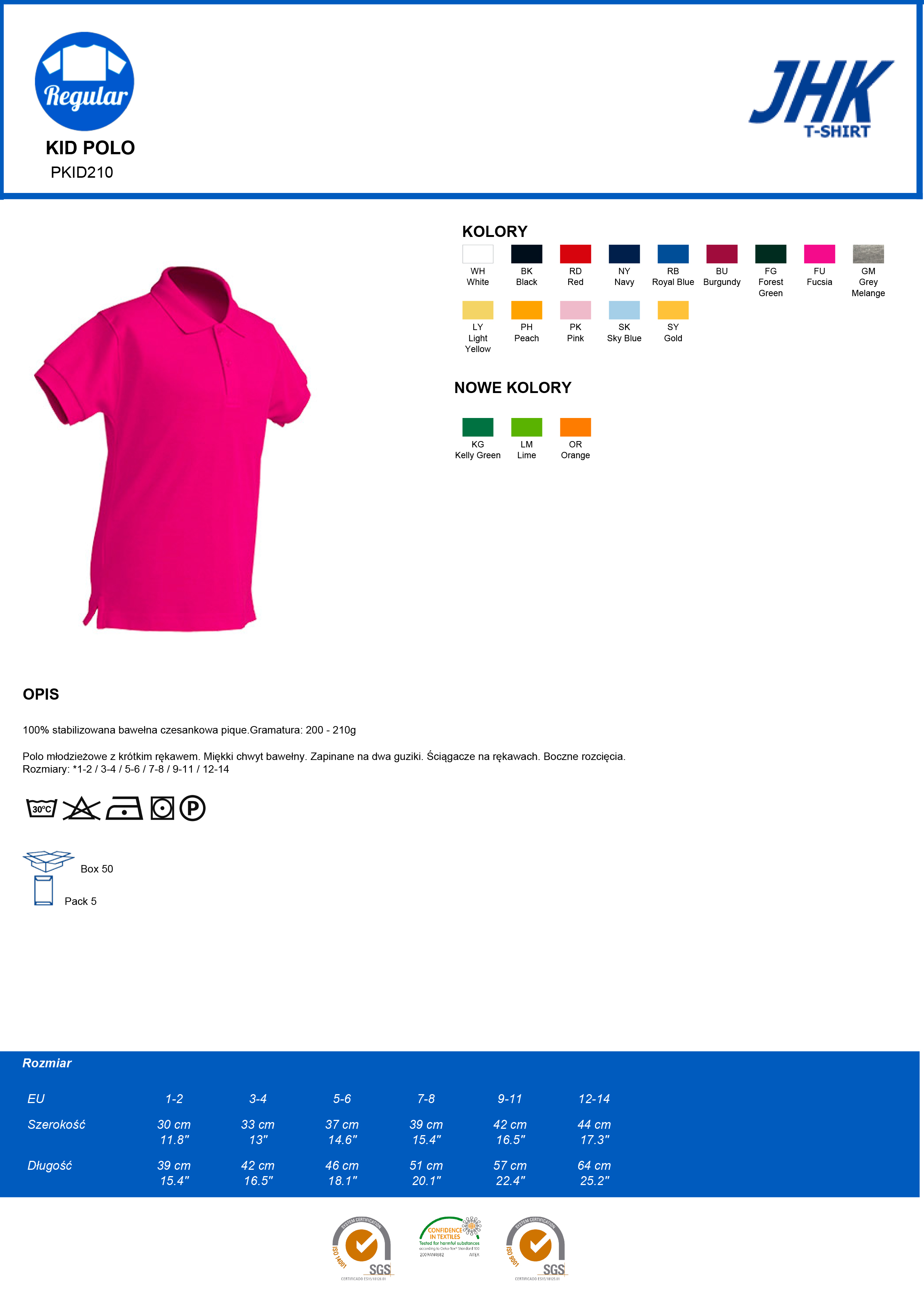 • Kod produktu: Koszulka polo dziecięca JHK PKID210