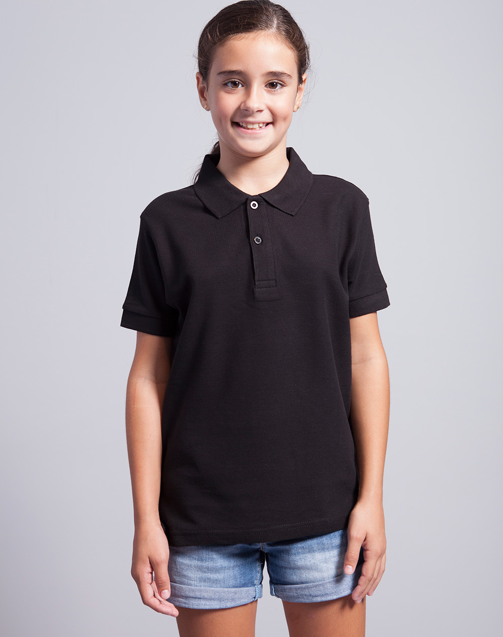 Polo młodzieżowe z krótkim rękawem. Miękki chwyt bawełny. Zapinane na dwa guziki. Ściągacze na rękawach. Boczne rozcięcia.
