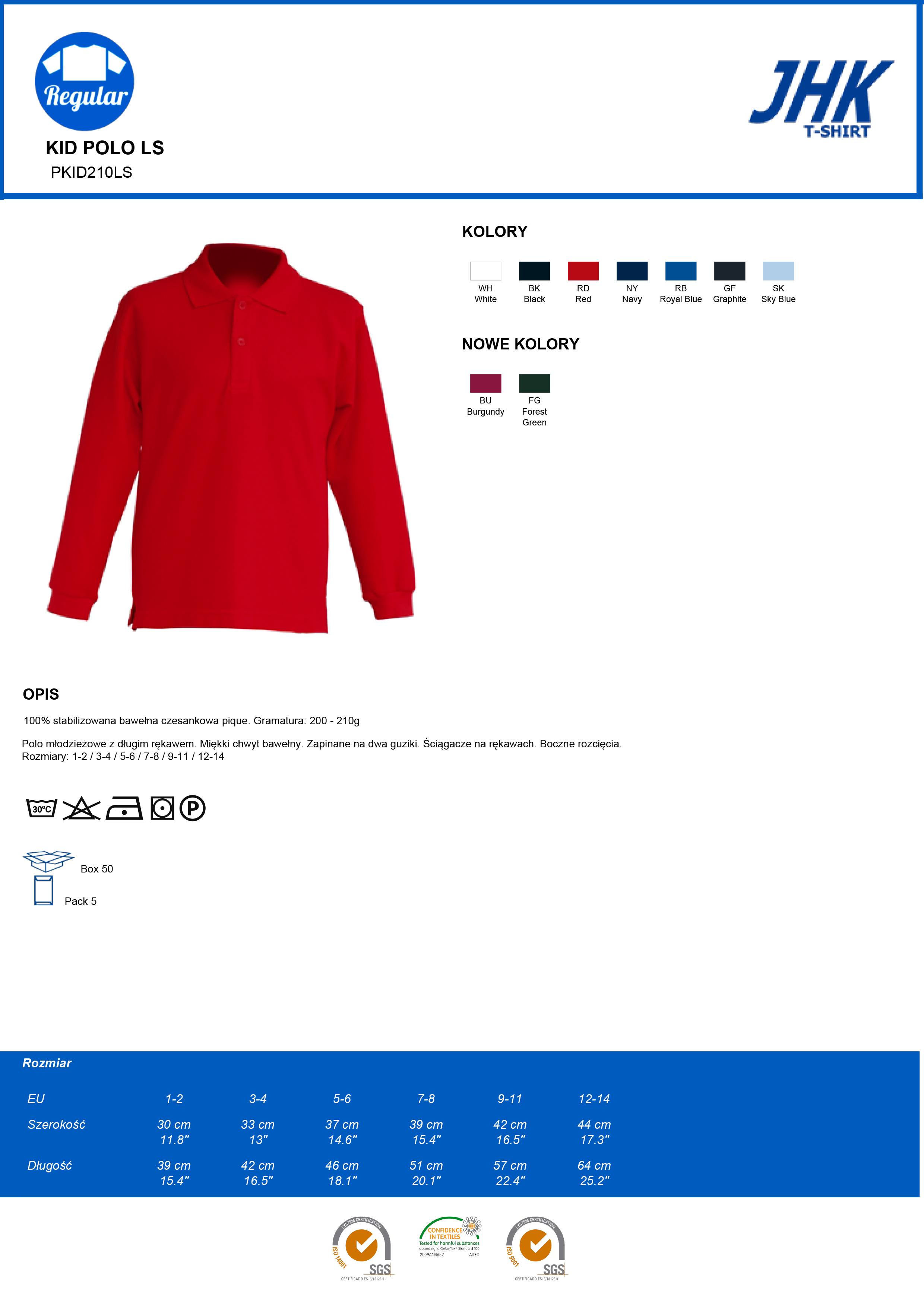 • Kod produktu: Koszulka polo dziecięca z długim rękawem JHK PKIDLS