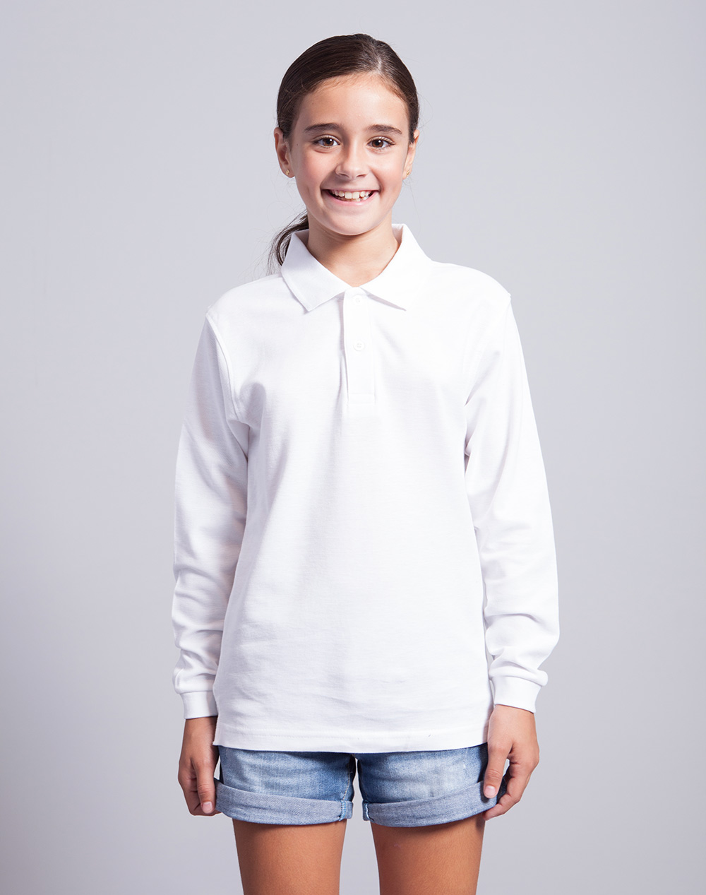 Polo młodzieżowe z długim rękawem. Miękki chwyt bawełny. Zapinane na dwa guziki. Ściągacze na rękawach. Boczne rozcięcia.