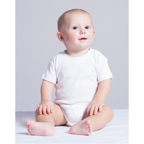 Body dziecięce z krótkim rękawem. Wykończenie pod szyją - lycrą. Zapinane na ramieniu i w kroku. Ściągacz 1x1. 100% bawełna.