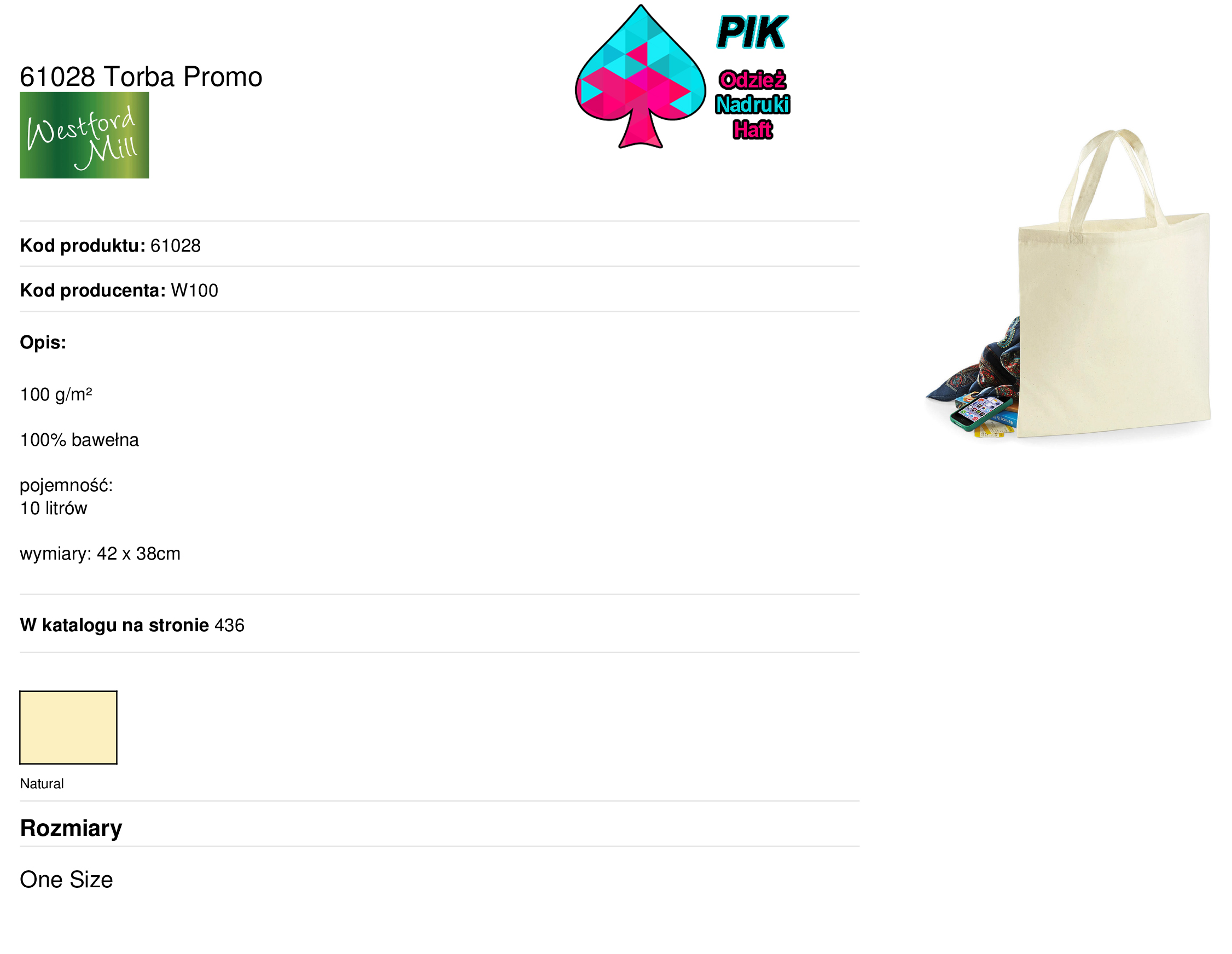 - Kod produktu: Torba Promo Naturalna pojemność 10L HAFT/NADRUK